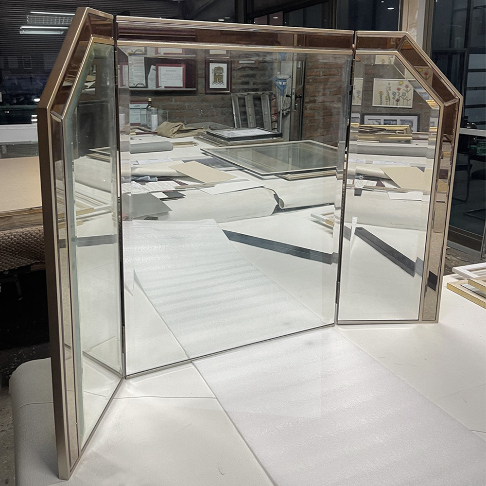 Este espejo es un triptico que se puede adaptar a cualquier muebles escritorio o tocador.